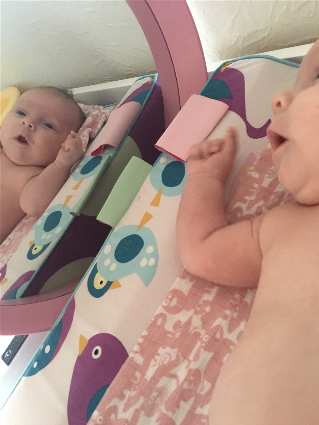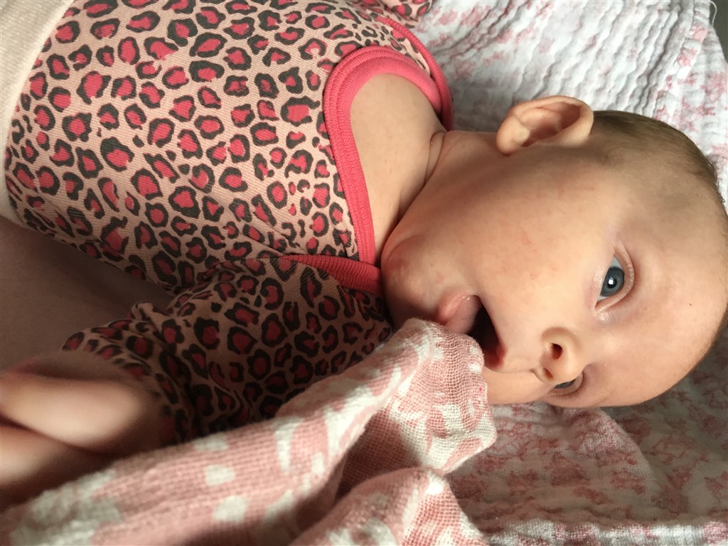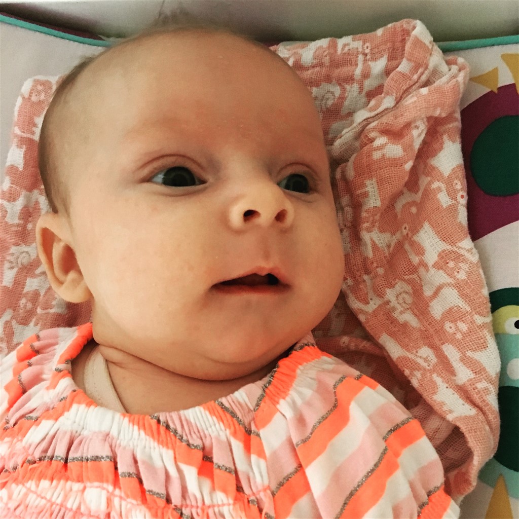 Hun er stadig mild, nem og næsten konstant smilende dog meget kræsen (hvis man kan være det i den alder) og går tit træt i erstatning og så må vi skifte til noget andet i 2-3 uger for at gå tilbage til det første når hun bliver træt af det andet. Hun sover fra midnat til kl. 5 og gerne igen fra kl. 6 - kl. 10, så jeg klager ikke