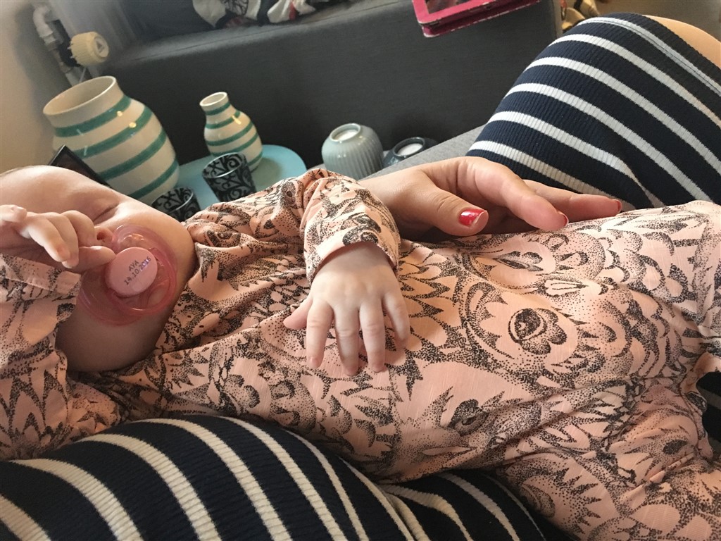 Hun er begyndt at sove ude og hun sover så godt i sin barnevogn (moren skulle lige bide det i sig første gang