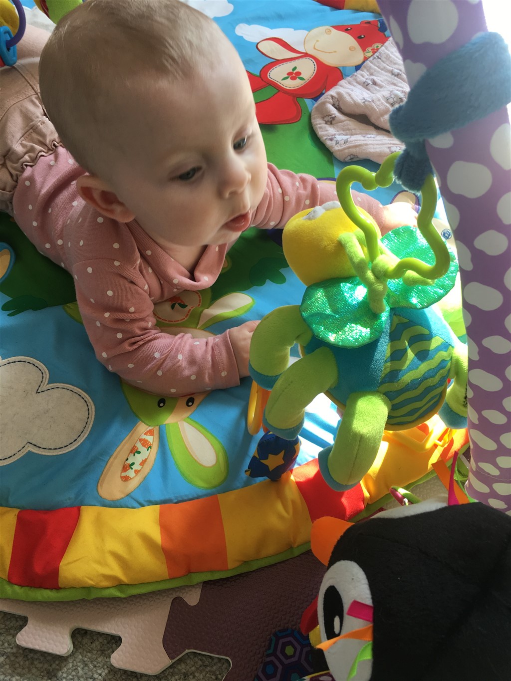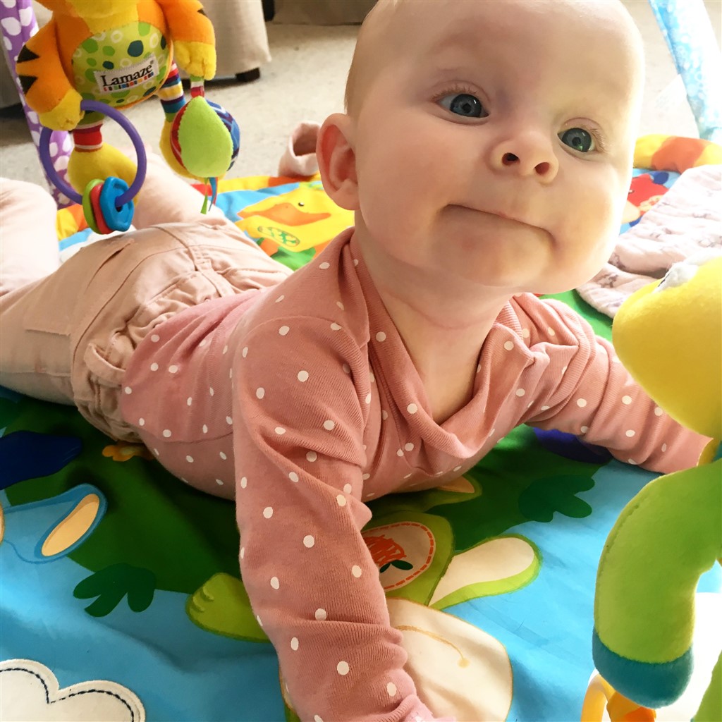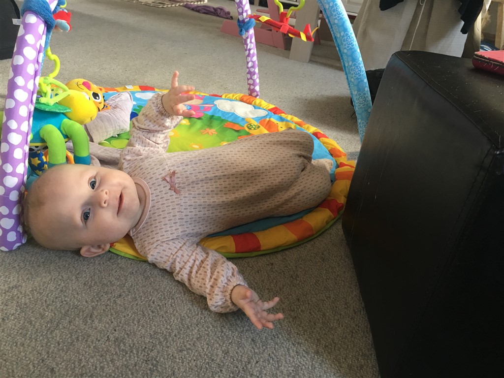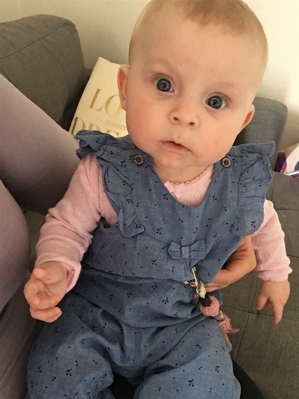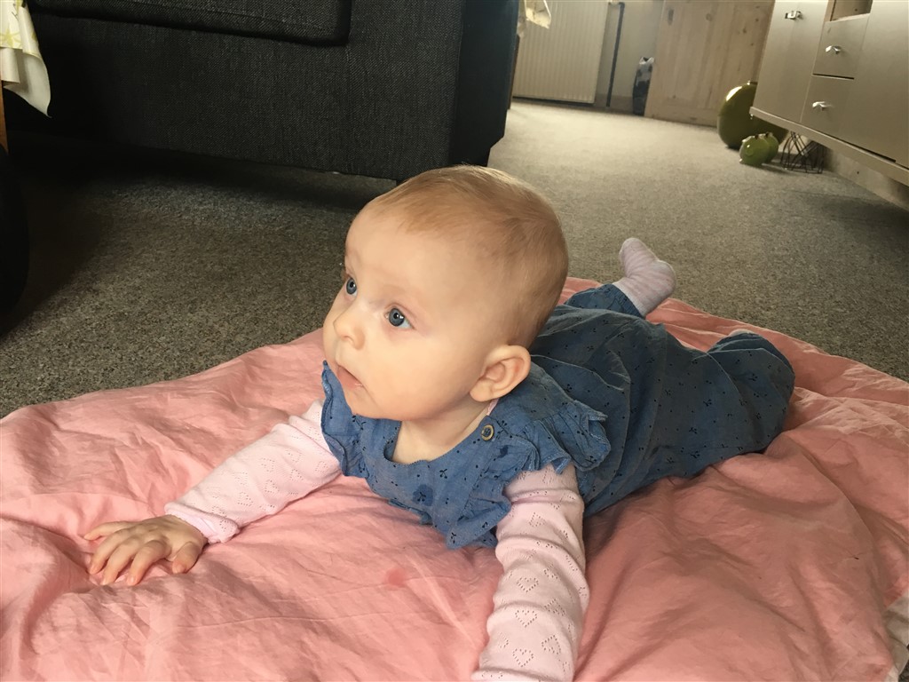 Hun har fået en tand og en anden er på vej, hun ruller rundt og er begyndt at lave ormen