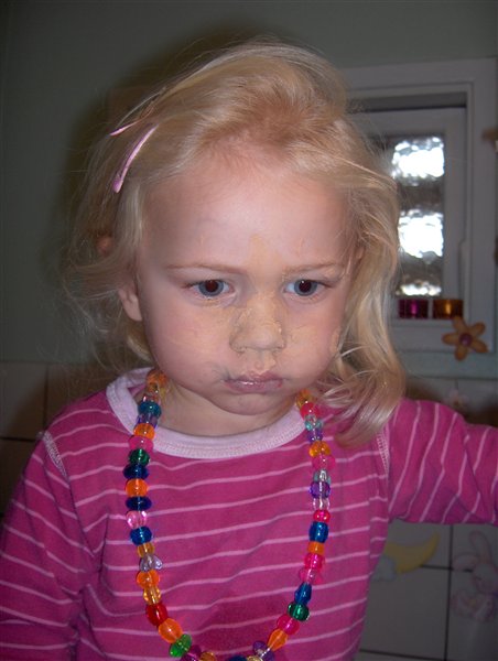 Hun havde simpelthen fundet min makeuptaske og liiige givet sig selv en makeover.