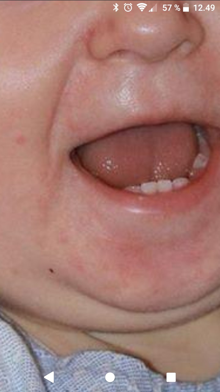 Min datter på 16 måneder har en masse røde knopper om munden. Det startede for snart et par måneder siden. Vi gik til lægen og fik fusidin. Det slog det lidt ned og fjernede det gullige blærer der var på noget af det. Efter endt fusidin kur var det stadig slemt og vi tog til lægen igen. Dommen lød sutteeksem/ eksem der kommer pga. Fugt. Vi bruger derfor locobase repair. I dag er det rigtig slemt og har været det de sidste dage. Vi bruger mam air sut og sørger for hun har den mindst muligt. Jeg kan bare ikke forstå det ikke hjælper og hvorfor det også kommer under øjnene og lidt diffust rundt i hovedet. Nogle der har prævet lign.? Billedet er fra en god dag og det er svært at se det, men det er lige det eneste billede jeg har hvor man kan ane det.
