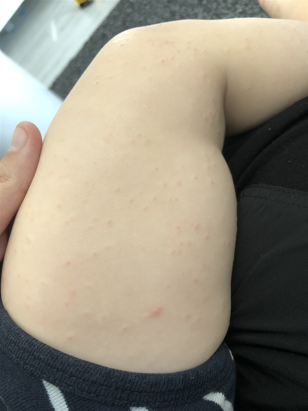 Millemor1 skriver: Nogen der ved hvad det her kan være? Min søn har fået sådan nogle mærkelige knopper på begge lårbasser, han er ellers frisk og feberfri som han plejer :-)