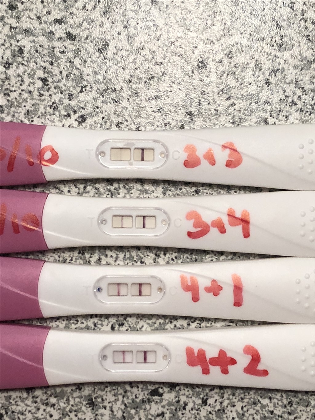 jeg fik lagt æg op torsdag d.25 og tirsdagen 3+3 begyndte min første test at blive positiv !
