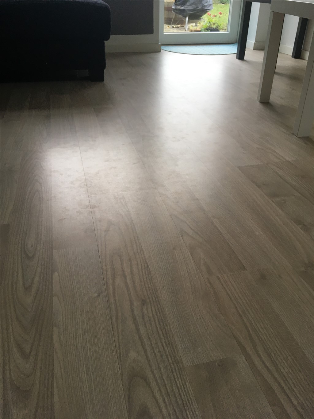 Vi har højtrykslaminatgulve, som vi har været glade for, fordi de er så slidstærke. De er 6 år gamle nu og begynder at drive mig til vanvid. De ser aldrig rene ud. Jeg kan vaske gulve i sæben som anbefales til dette bestemte gulv, og så snart man går på dem igen på strømpefødder eller indesko, så ses mærker/spor. Jeg er så træt af det, og her ser aldrig rent ud.