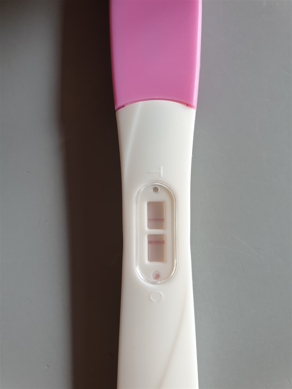 Selvom teststregen er en anelse tyndere end kontrolstregen, så har de lige kraftig farve. Hvad mener i er den positiv eller negativ