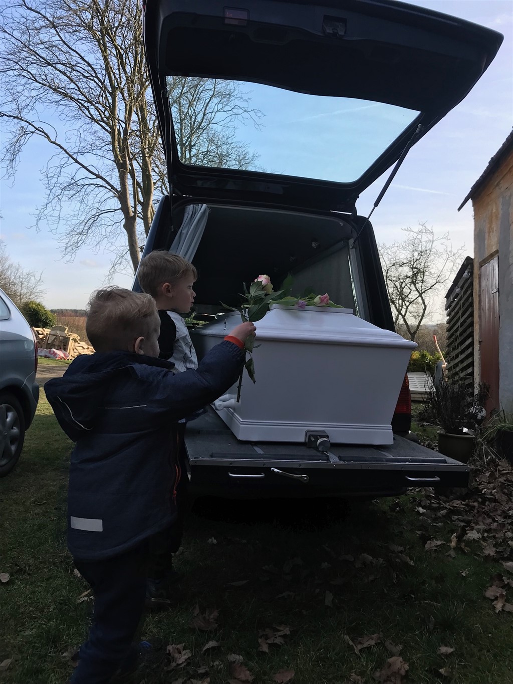 Vi forberedte ham ved at fortælle lidt om det hele i en kort udgave. At vedkommende var død. Meget syg eller gammel, og at der nok mange i kirken som er kede af det, fordi personen har haft en stor betydning og at det er helt normalt.