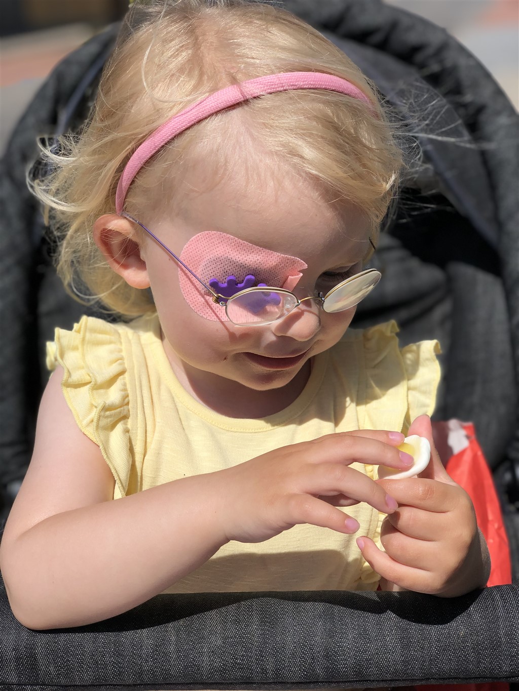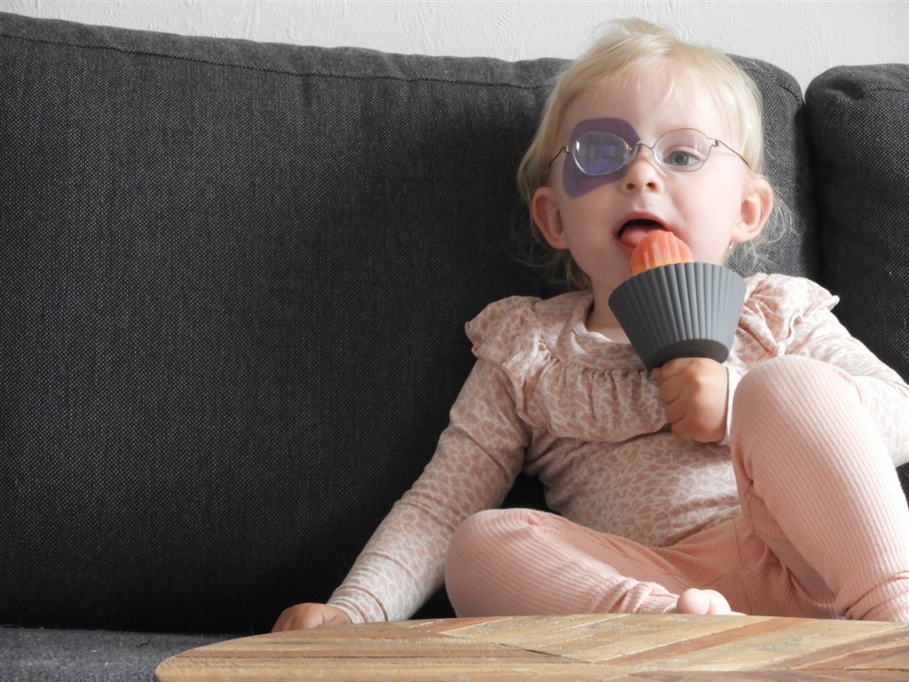 Og så er den første måned gået med plaster på øjet og hun har fra første dag bare været helt med på det!