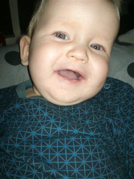 Trineviborg skriver: Hvor er han skøn Især det første billede hvor han flækker i et kæmpe grin