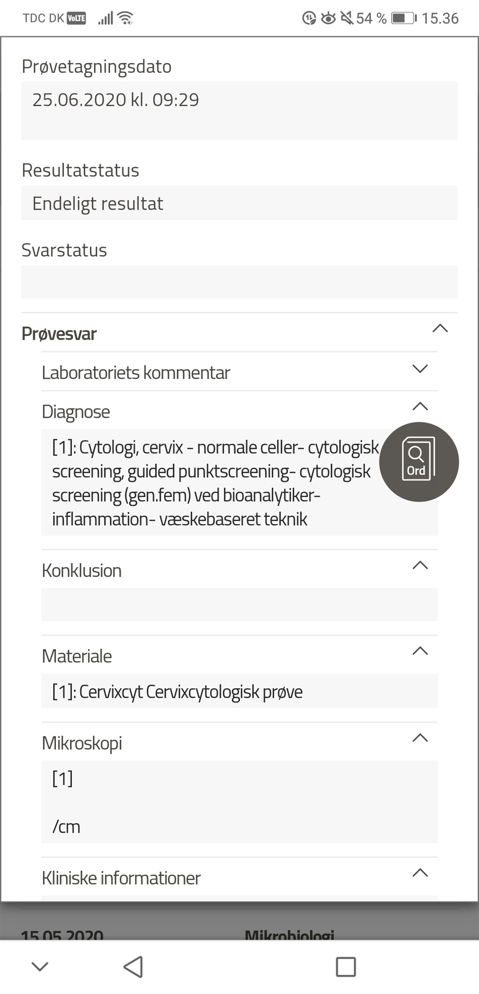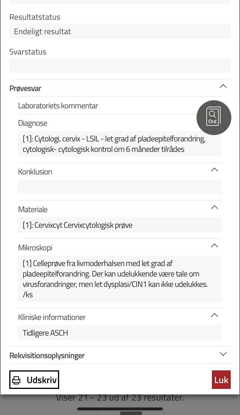 Jeg har 14 dage efter en celleskrab test fra livmoderhalsen fået svar. Jeg kan ikke tolke det og der står ikke noget under konklusion.