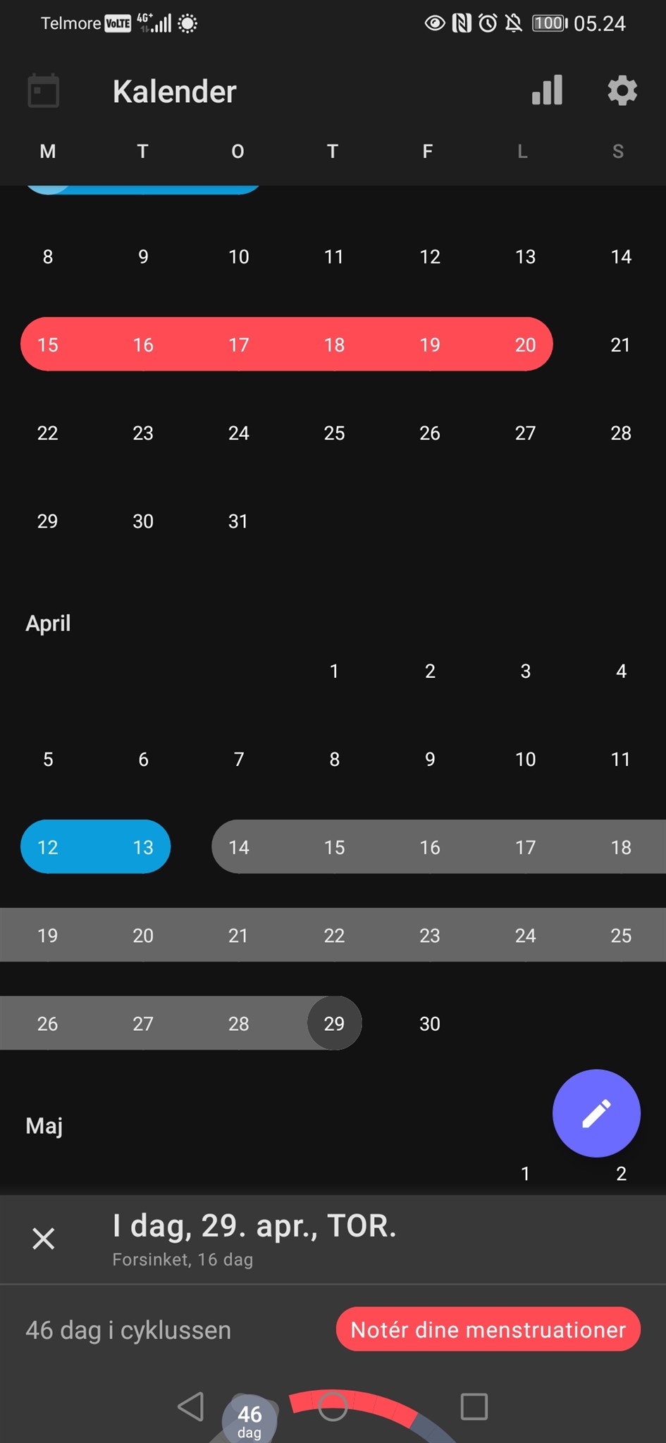 Men ifølge appen er du jo så idag 1 dag over tid ikke?