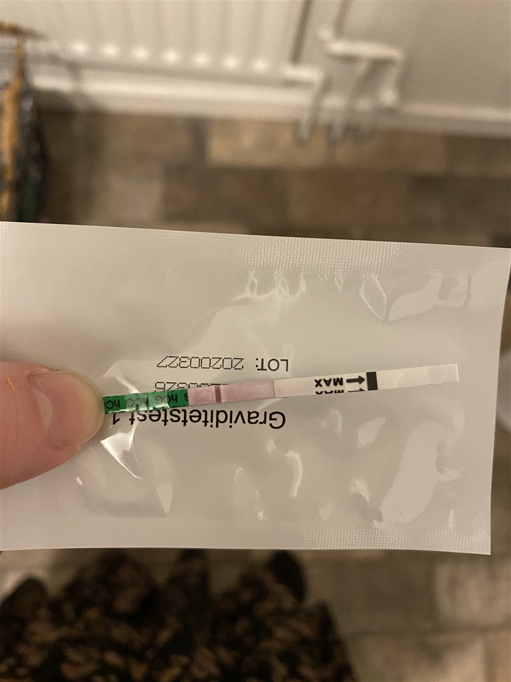 Altså jeg fornemmer noget, men som de andre skriver, den er druknet i tis. Den skal være i i 10 sekunder, ikke længere. Og så vent med at tage billede til der er "ro" på testen, altså at tisset er løbet ordenligt igennem, men max efter 5 minutter, derefter kan du ikke regne med testen.
