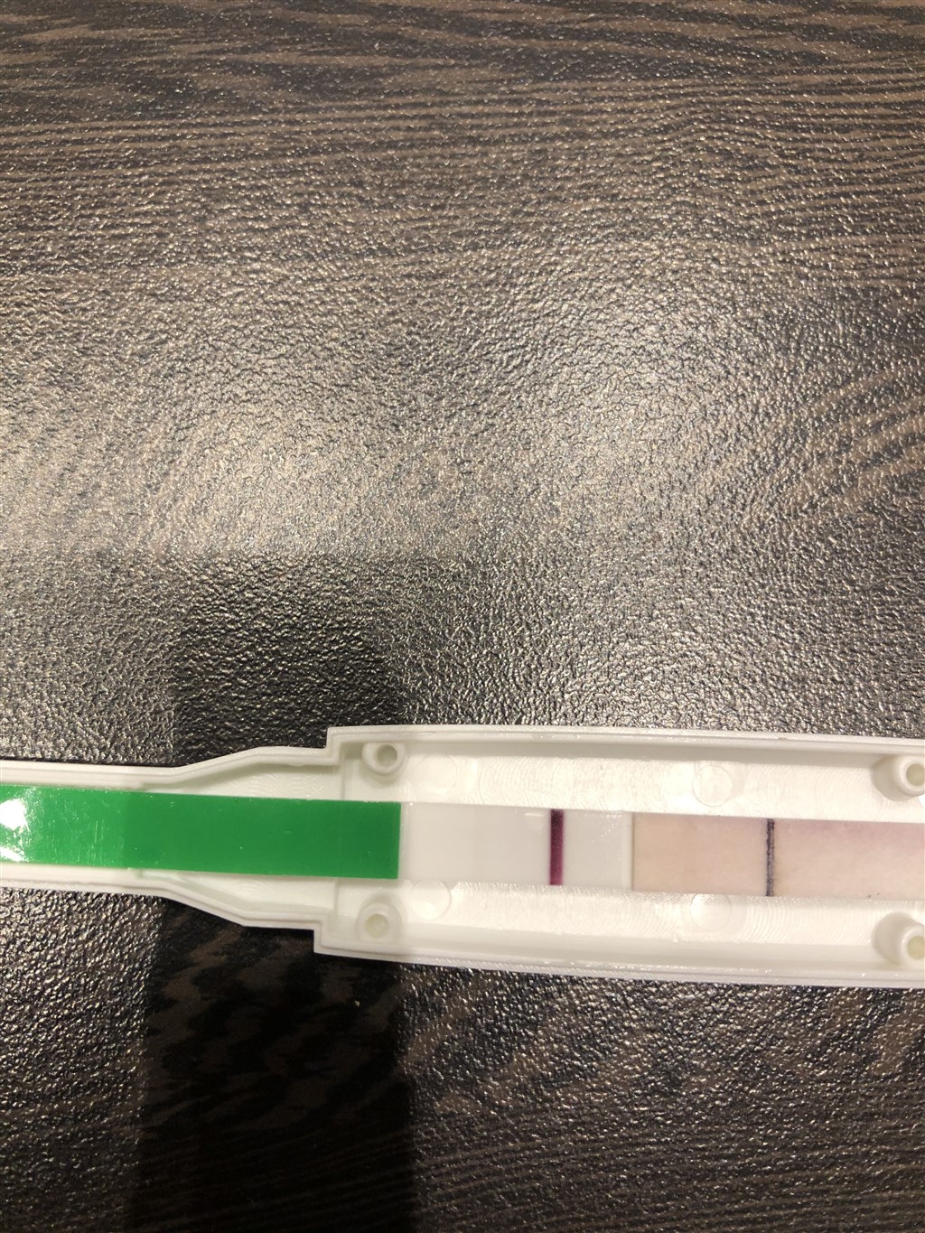 Testen fra Rema er taget i går morges, og der kom en meget svag steg efter ca. et halvt minut. Jeg skulle have haft menstruation i går, så er jo kun 1-2 dage over tid. Så det er stadig meget tidligt. Lægen sagde dog, at hvis jeg havde en positiv test indenfor testtiden, så er der højst sandsynligt en graviditet