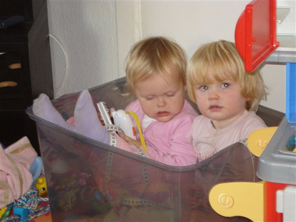 Det billede hvor Laura sidder i en kasse sidder hun sammen med hendes Kusine...