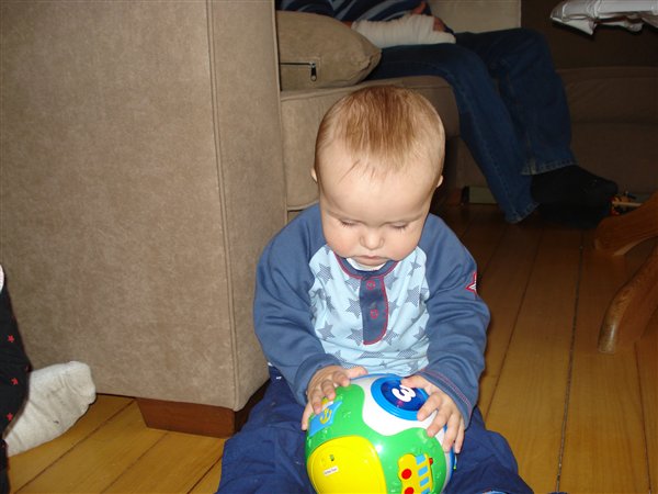 Så er der lige lidt flere billeder herfra... Nogen af dem er fra Benjamin's fødselsdag, den bold han sidder med er en fødselsdagsgave, den er han rigtigt glad for, den kan nemlig spille musik og bevæge sig...