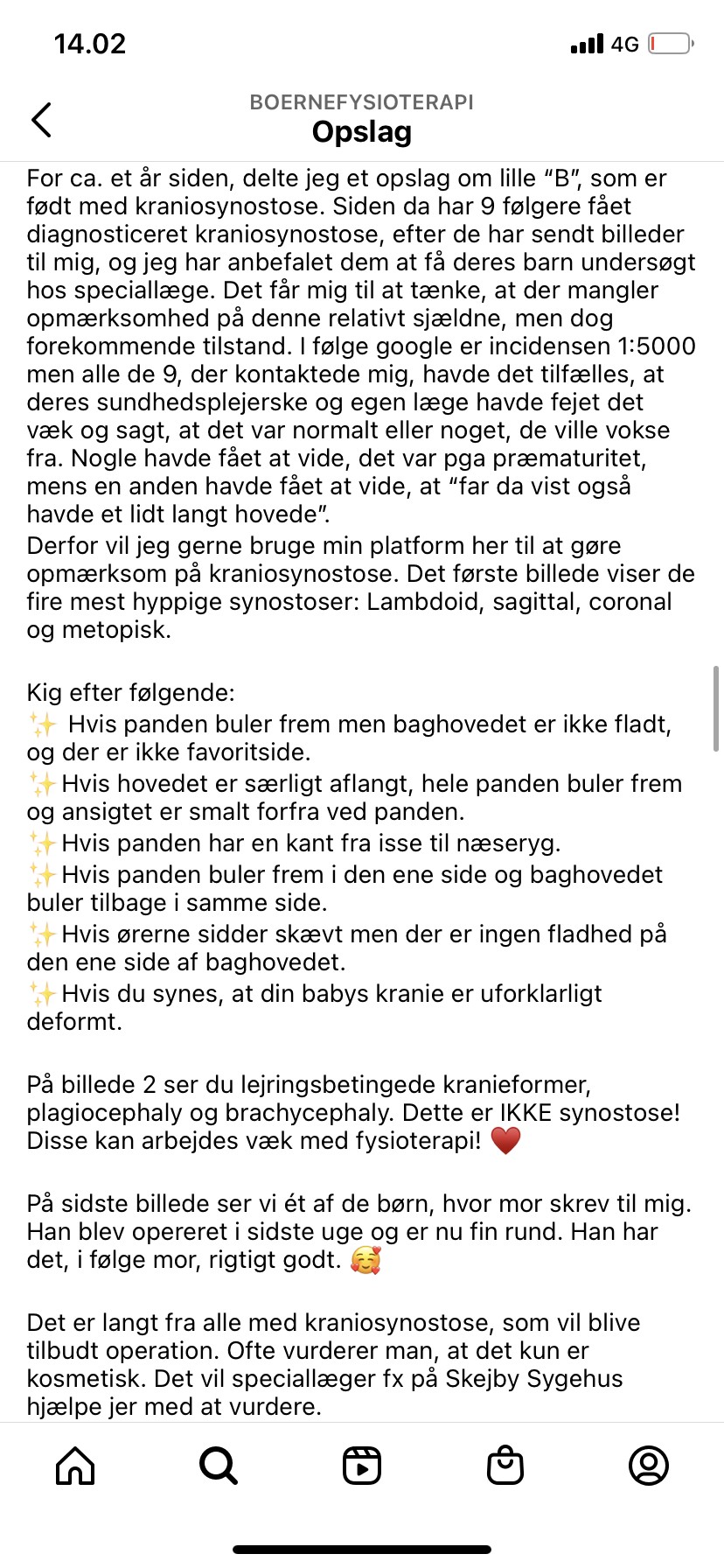 Min søn har skævt hoved - han blev født med det efter at have ligget "forkert" i maven. Vi gik til fysioterapeut og kiropraktor med ham, da hele kroppen også var skæv. Kroppen blev fint rettet op - men ak, ikke hovedet.