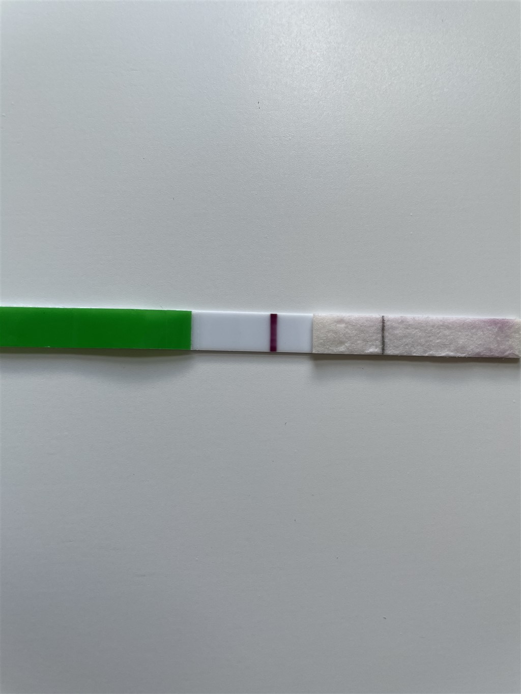 Jeg kan godt se der er en svag skygge hvis jeg virkelig zoomer ind og kniber øjnene sammen. jeg ville betragte den som negativ også teste igen om nogle dage.
