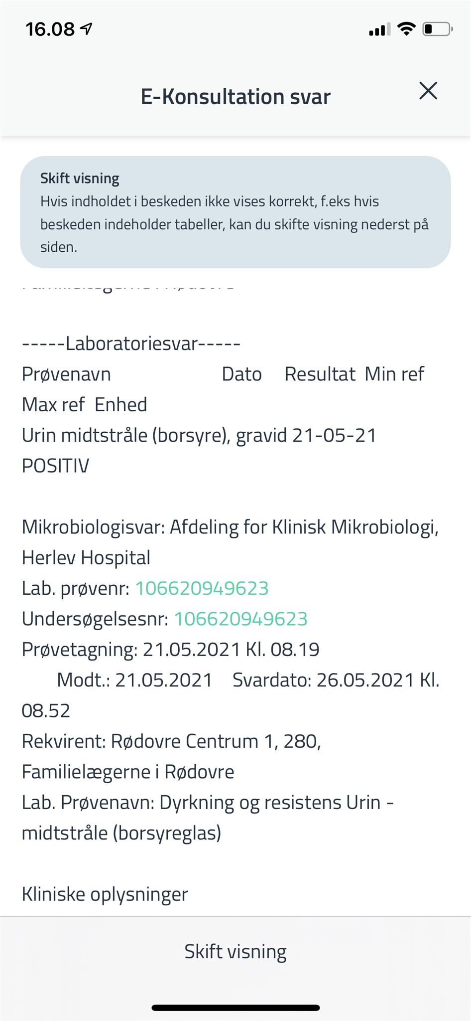 Jeg arbejder selv på en mikrobiologisk afdeling, og når der indsendes en urin til dyrkning og resistens, så laves der altså ikke en graviditetstest også? Ja faktisk laver vi slet ikke graviditetstests overhovedet. De praktiserende læger skriver hvis patienten er gravid, men det er fordi, man kigger efter hæmolytiske streptokokker gruppe b.
