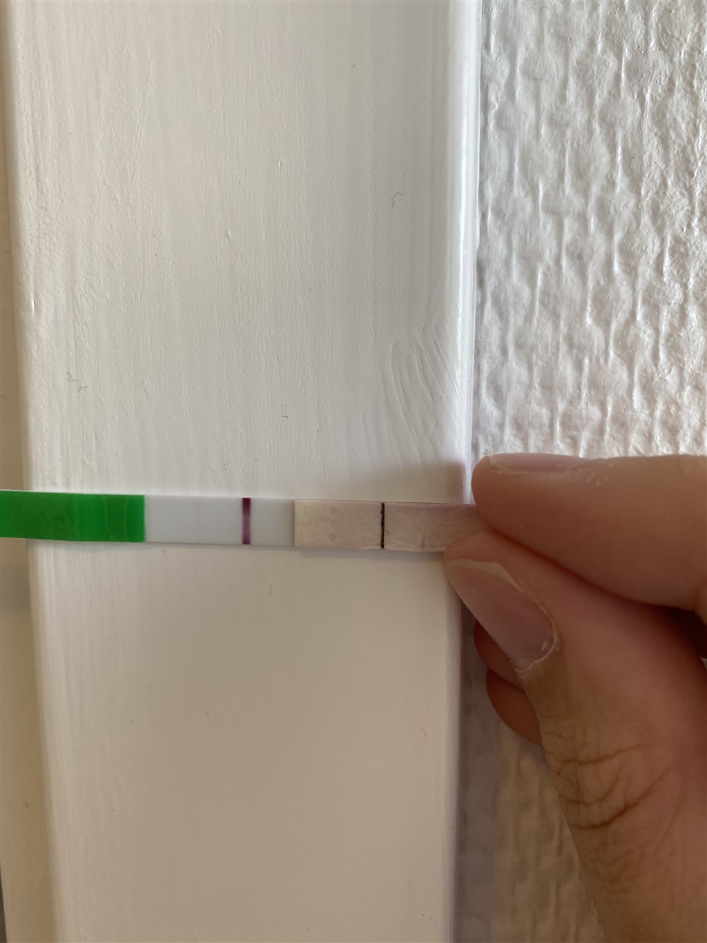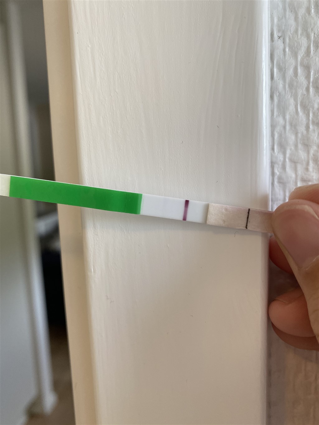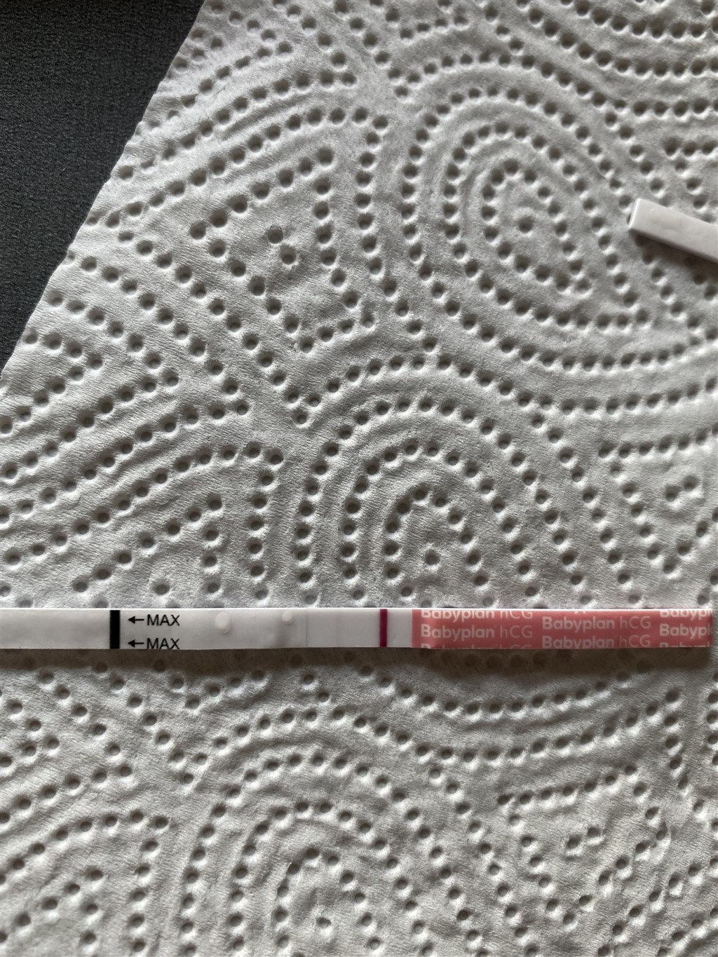 Sådan så min første test ud i denne graviditet, forsigtigt vil jeg sige tillykke, for den er positiv