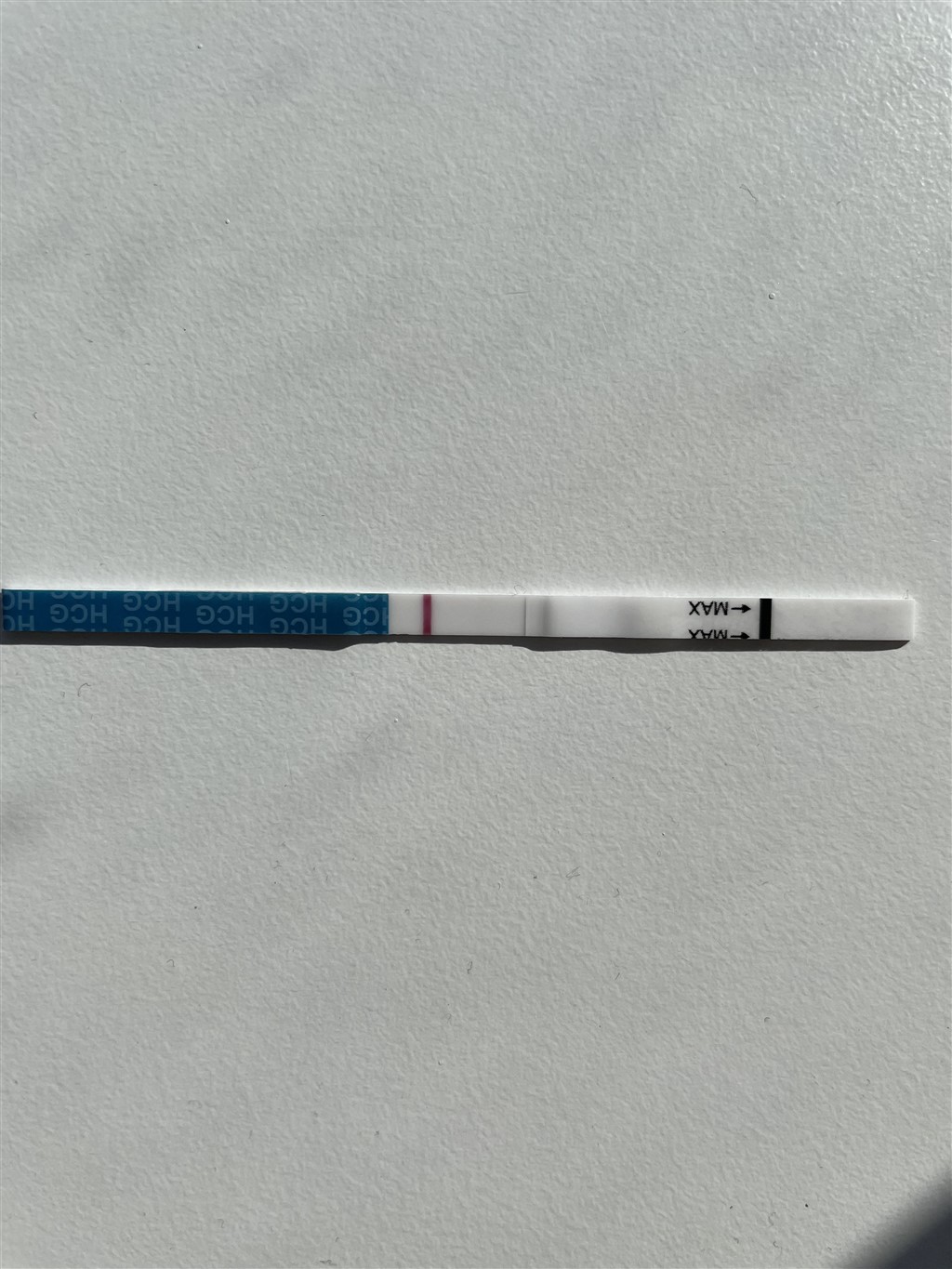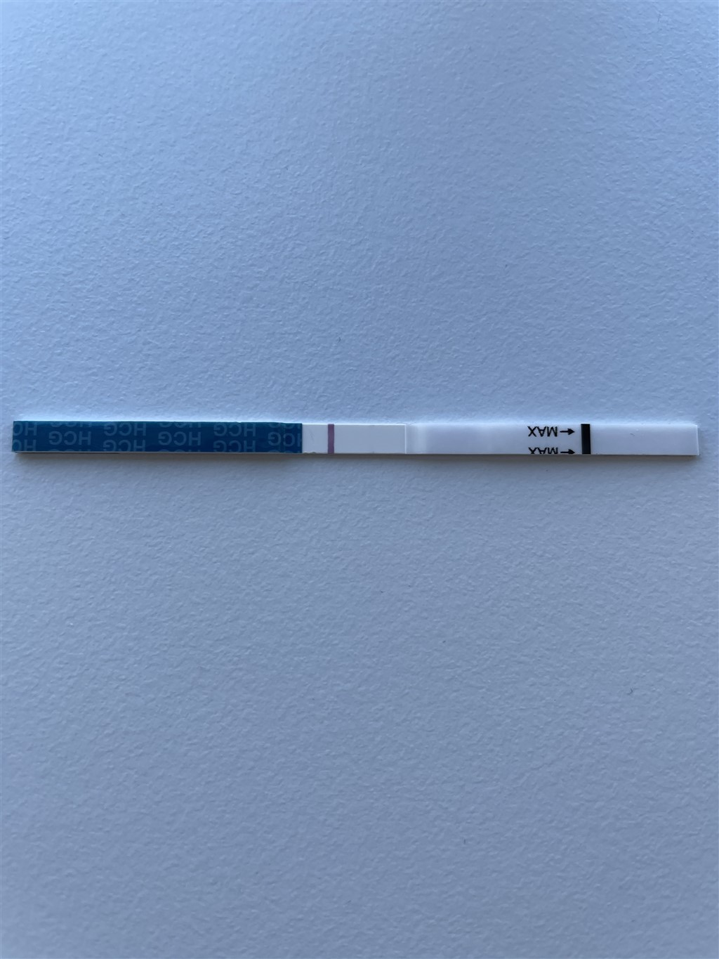der var en “skygge” inden for tid. Er i tvivl om om den er positiv. Det lyse billede er inden for tid. Det andet billede er efter tid hvor testen er tør (ca.1 time).