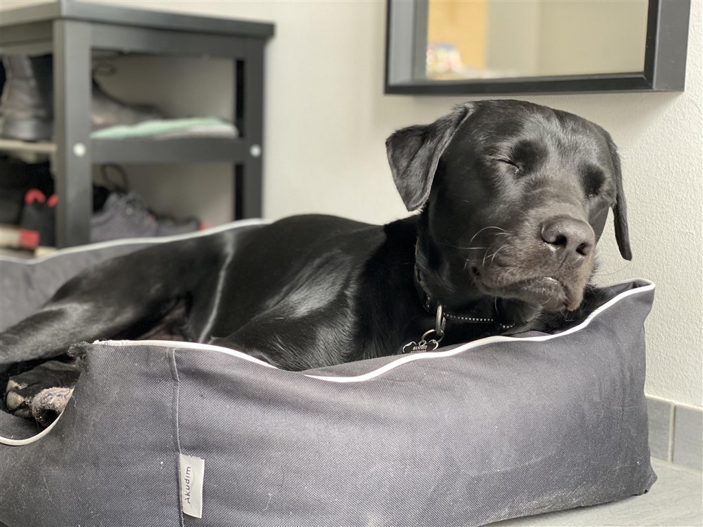 Vi har jordens sødeste godt 2-årige Labrador, og jeg har nok været lidt for god til at lege med ham, for lige så snart man kommer ned at sidde på gulvet, bliver han helt overgearet og tror, vi skal lege (for det plejer vi).