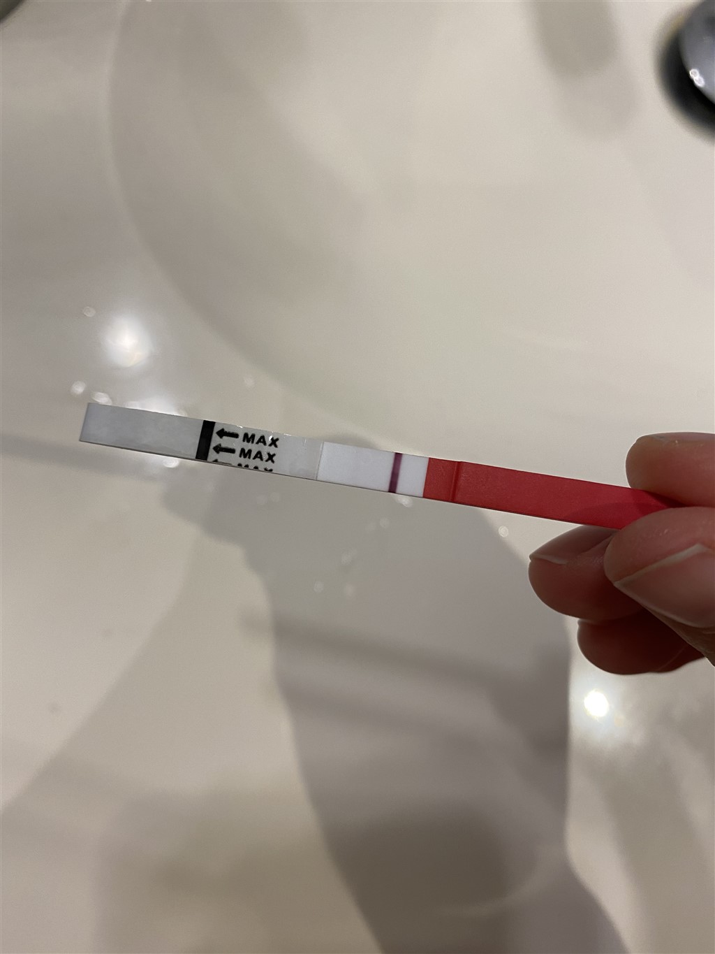 Test igen på morgenurin og helst først ved udebleven mens. Du kan ikke regne med en svag streg der først kommer efter tid.