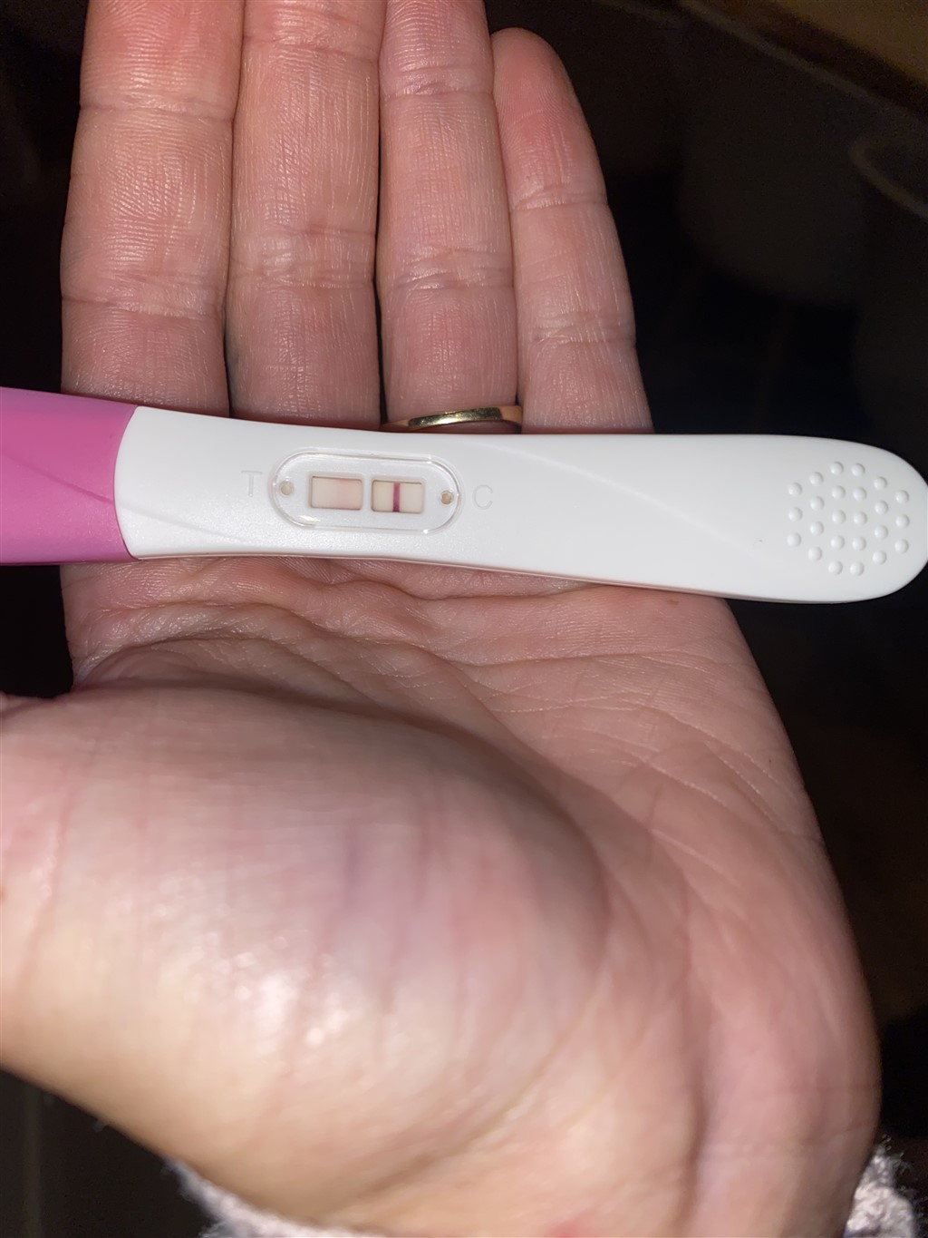 Jeg ser en positiv test. Jeg fik først en svag streg 4+1 med min søn, og den var svagere end den der. Krydser fingre