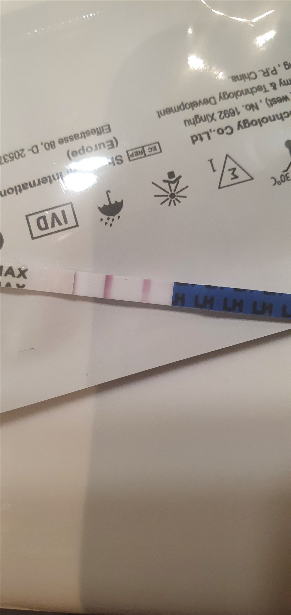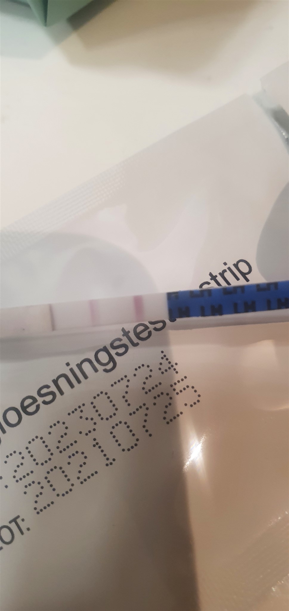 Det er ikke til at vide. Den kan se sådan ud gennem hele cyklus, og den kan være tydeligere én dag og mindre tydelig næste dag. Bliv ved med at teste, og gerne to gange om dagen