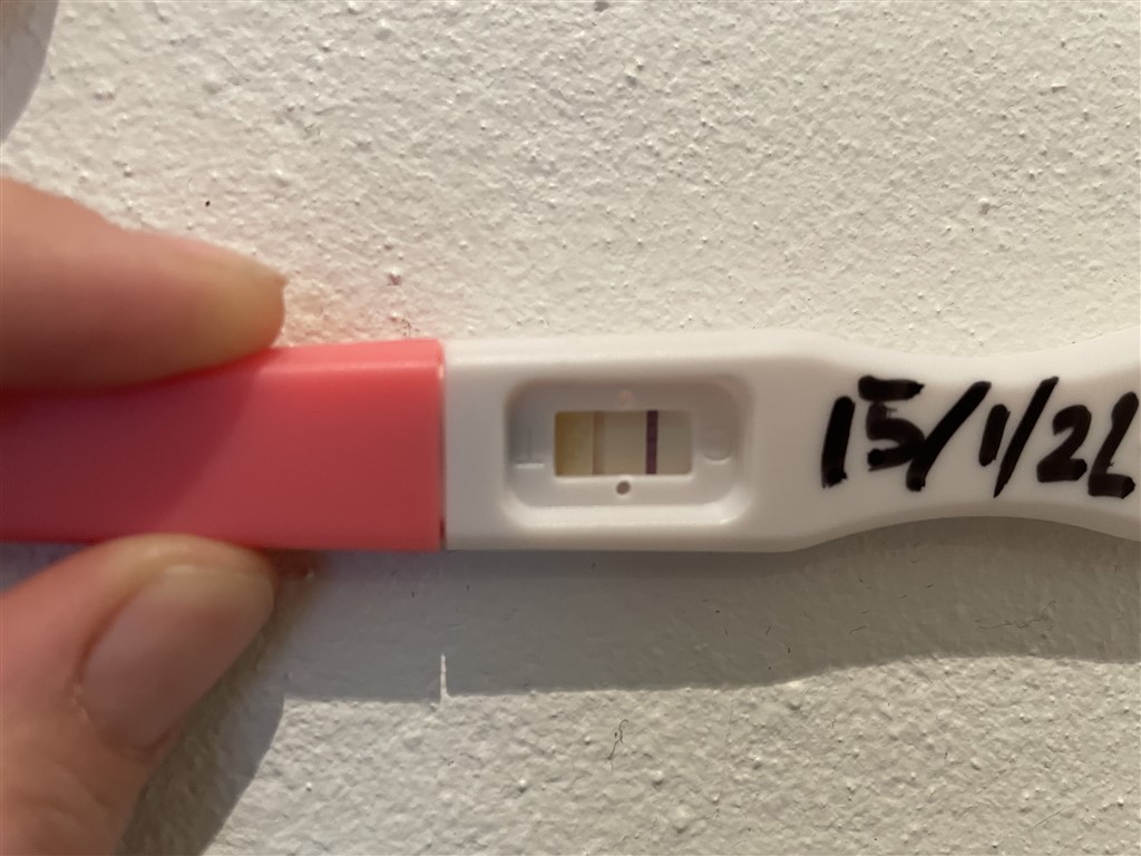 Kan den godt være falsk positiv efter tid. Den var svagt positiv er 9 min. Og dette billedet er taget en lille time efter. Gemte testen, og over natten er stregerne næsten lige tydelige. Er 4+0