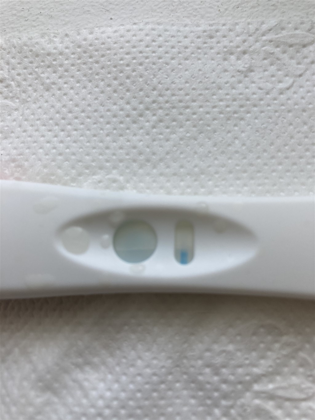 Synes der en svag streg og meget blålig farve - men er usikker på om den er ugyldig da kontrolstregen kun er halv?