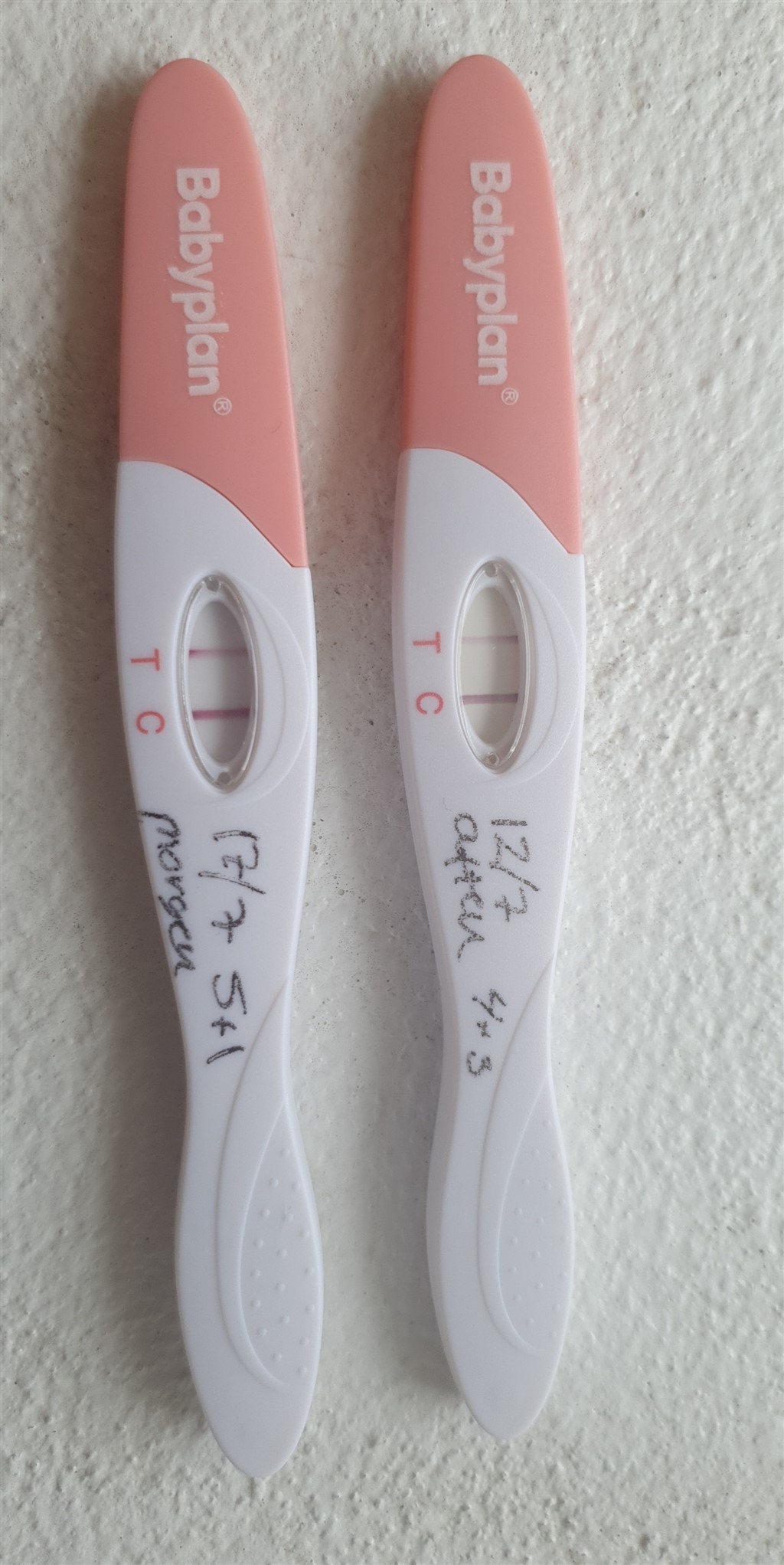 Jeg er idag 5+1. Jeg har testet jævnligt fordi jeg før har mistet og er naturligvis bange for, at det sker igen. Jeg ved godt at man hverken er mere eller mindre gravid af at blive ved med at teste, men det giver en vis ro (eller uro
