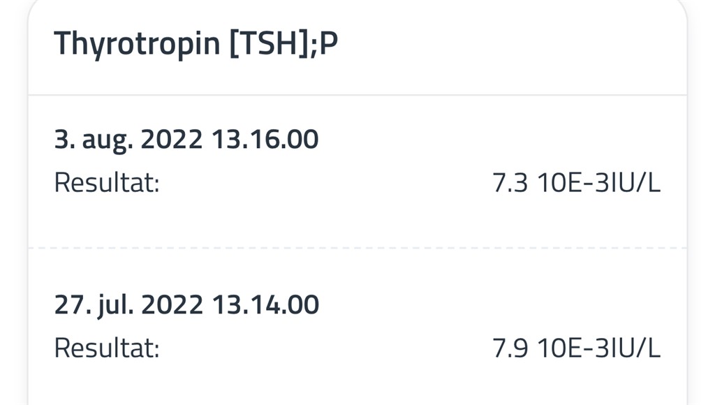 Jeg har for lavt stofskifte, som jeg fik konstateret i juni 2021 i forbindelse med vores udredning for gentagne graviditetstab (vi har mistet 3 gange lige efter hinanden). Inden da var mine tal indenfor normalen.