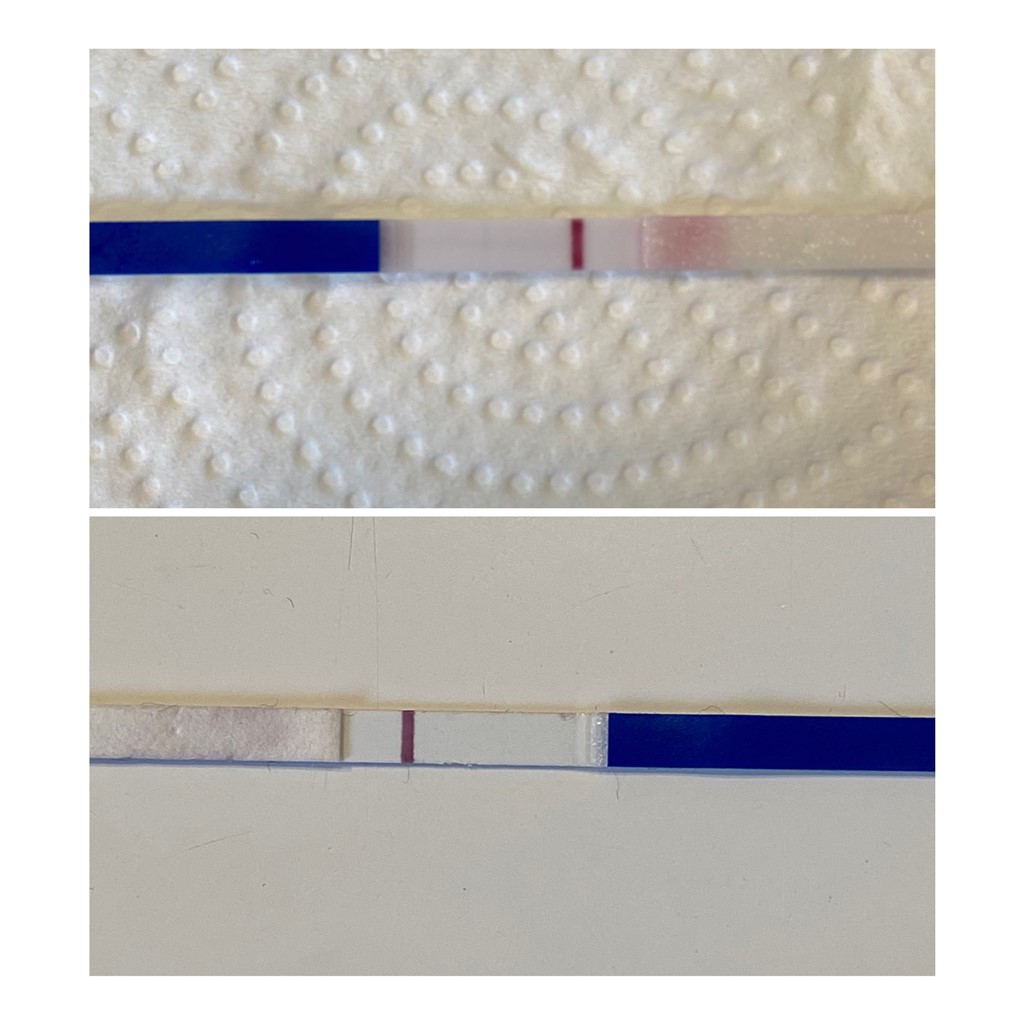 Kan I hjælpe her? Burde være 3+1 i dag, så meget tidligt. Testen er taget i eftermiddag. Øverste billede er taget efter 5 min, nederste efter flere timer, hvor stregen jo er nærmest væk? ♀️. Hvad tænker I?