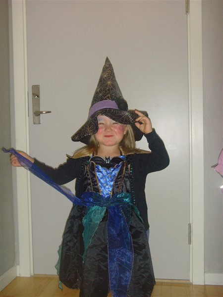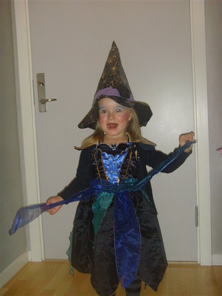 I dag er der blevet holdt Halloween i børnehaven.. Phillipa var heks Hun elsker at være klædt ud, faktisk kunne hun gerne gå i børnehave hver dag iklædt en form for kostume