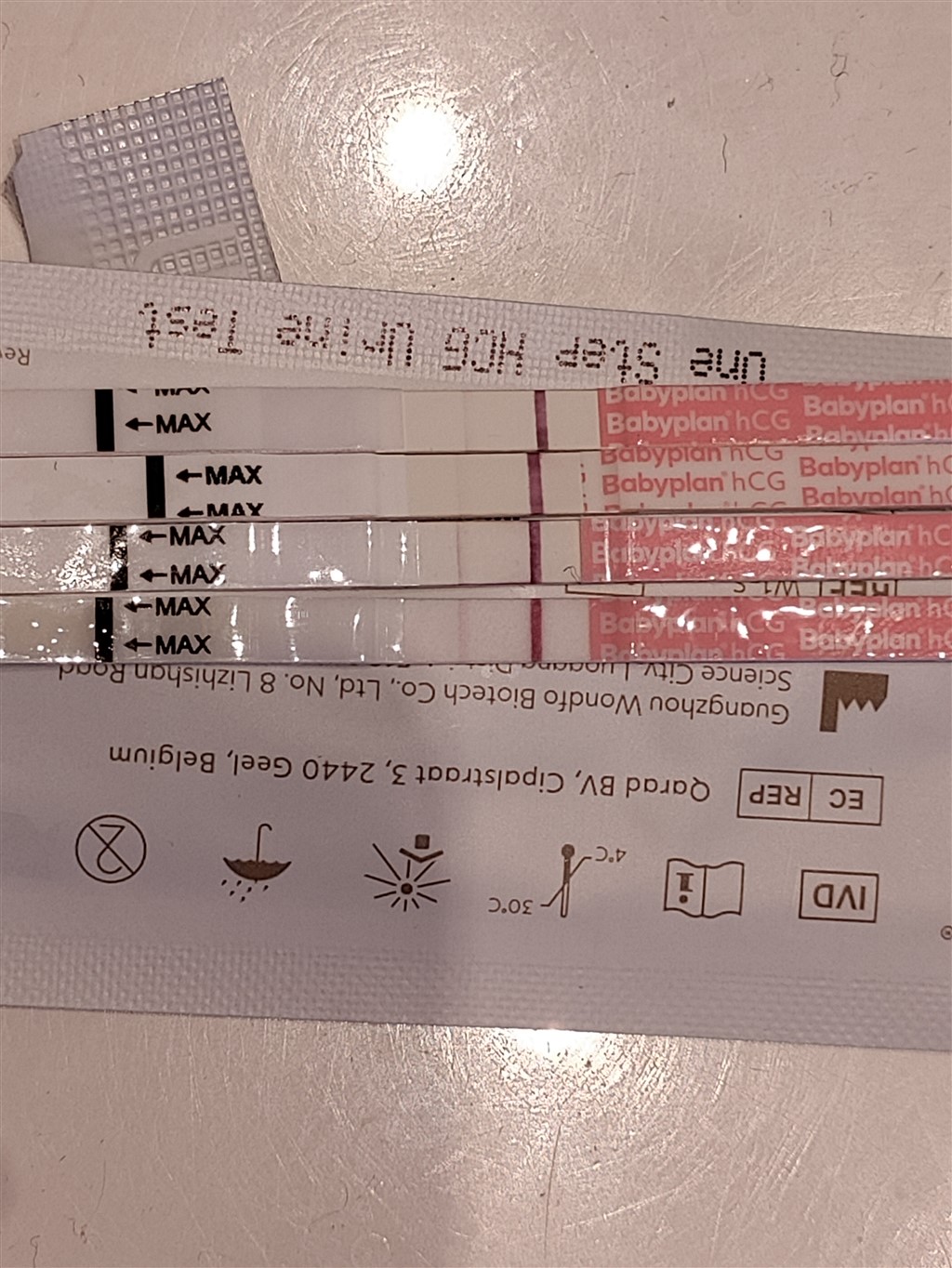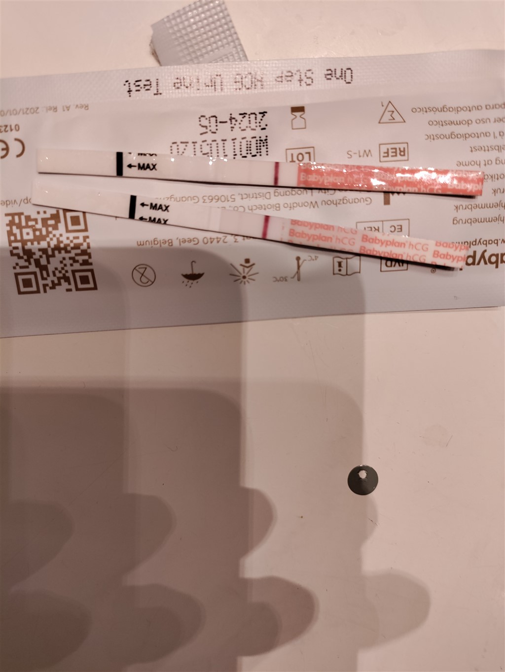 Er vi enige om at disse er positive? Jeg havde sidst menstruation i januar så aner ikke hvor langt jeg er henne. Må jeg se jeres test og hvor langt i var?