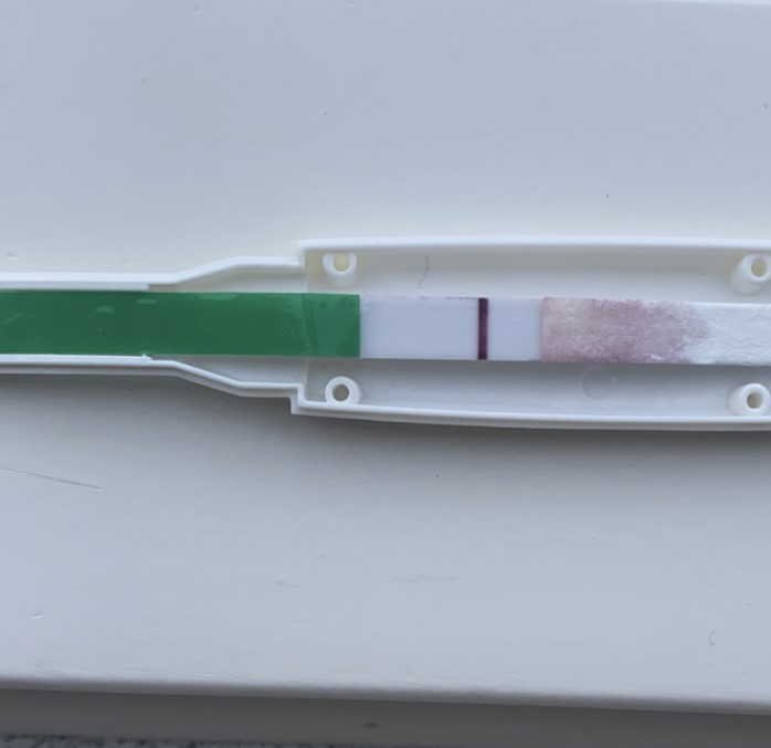 Kan desværre intet se på den. Men er testen ikke også gået i stykker? Der plejer da at være plastic på toppen også?
