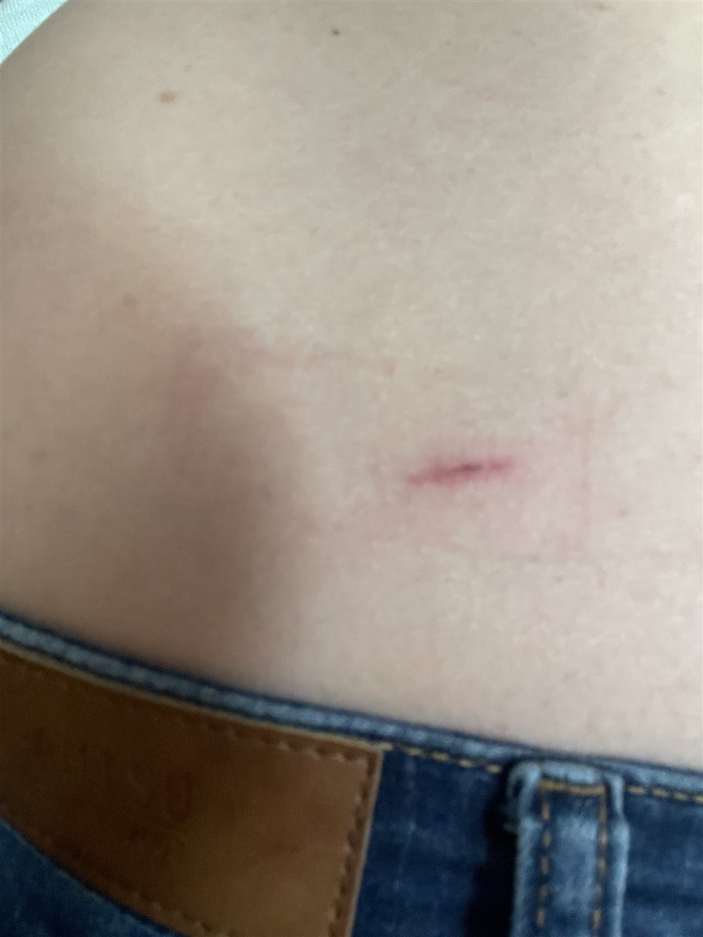 idag er det rødt og lidt hævet, men det ser ud til at have lukket sig.