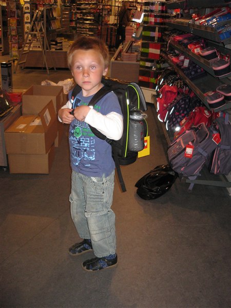 Også lige et lille billede af ham da vi var ude og købe hans aller første skoletaske....han glæder sig bare såååå meget