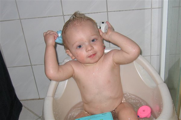 Luka bruger stadigvæk badekarret og han synes stadigvæk, at det er fantastisk - han blev 2 år i oktober. Jeg kan ikke huske, hvor længe, at de kan bruge det - til 3 år?? hm hm.
