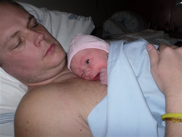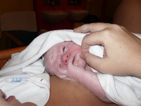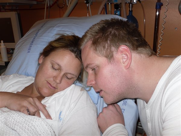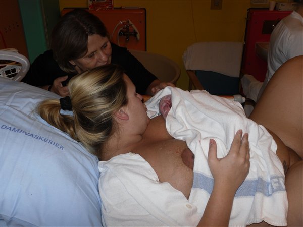 De havde rygende travlt på fødegangen i onsdags, så i stedet for at tage vandet kl. 9 som planlagt, så tog de det først kl. 18:15 - og vupti 2 timer og 15 min efter lå hun på mit bryst.