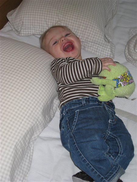 . Han blev også udnævnt til Greve mester i rulning og SP var meget imponeret over hans færden bestod af en blanding af rulning og møffen. Hun mente helt bestemt at hvis vi havde haft gulvtæppe så havde han kravlet nu. Nu må vi se synes det hele lige pludselig er gået meget stærkt her på det sidste og det vigtigeste er jo bare at han er glad og tilfreds.