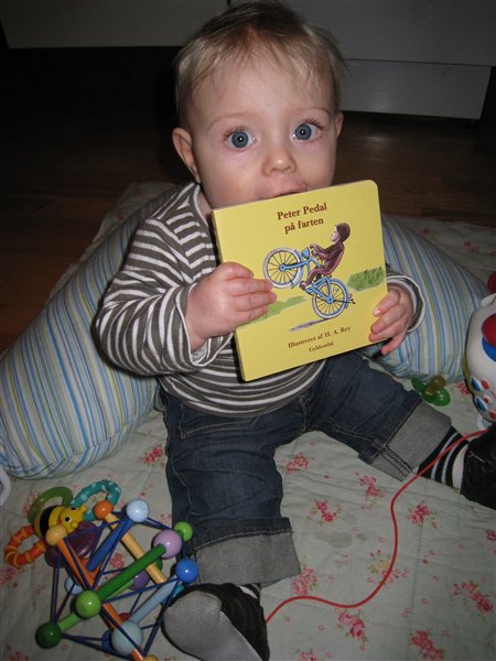 Linus har nu indtaget en kampvægt på 9,3 kg og SP mente bestemt godt jeg kunne regne med at have et barn over 10 kg ved 1 års alderen. Han måler 71 cm. i længden men det passer jo meget godt med at det meste af tøjet nu er str. 74.