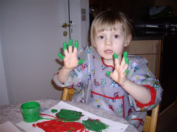 (i mit stille sind troede jeg jo at ungen var knaldtræt og gerne ville stene hele dagen). Puha, der er gang i hende. Vi har leget med perleplade, modellervoks, fingermaling og paraplyer (sådan nogle stikke ned i en plade dimser), været på skovtur med hendes lege mad og meget meget mere.