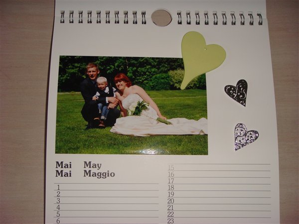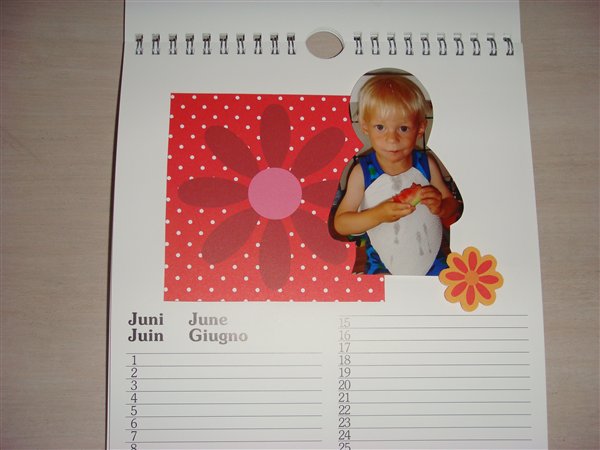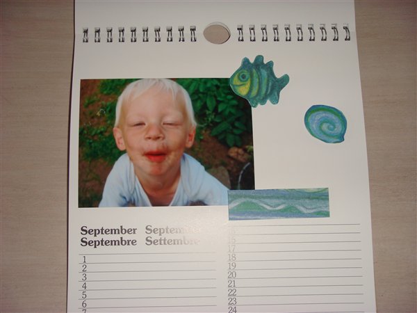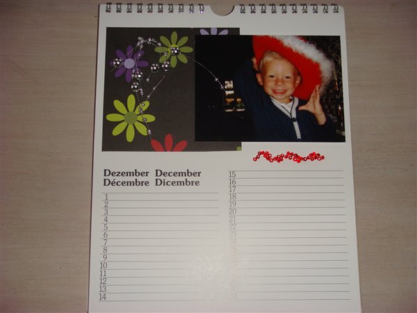 Det er en kalender jeg har købt, hvor jeg så selv har fået fremkaldt nogle billeder. De billeder har jeg klippet og klistret ind og alt "pyntet" du ser, har jeg selv limet ind, givet det 3D effekt m.m.