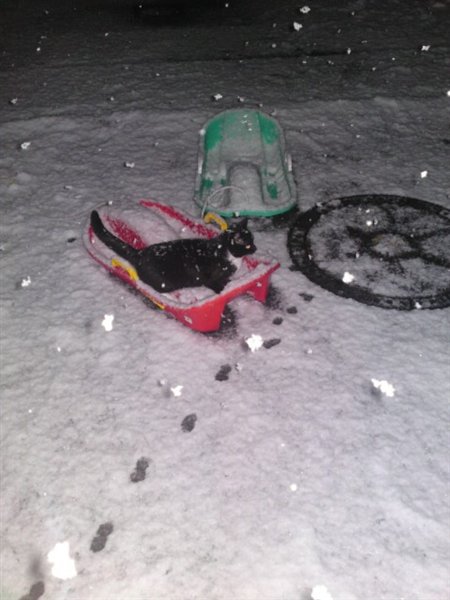 Sidste billede er fra nu da jeg puttede Filuca, og som I nok kan se må Julius have prisen som årets mest forfrosne kat, ha ha! Han puttede sig helt ind til sig efter en tur i årets første sne:-)