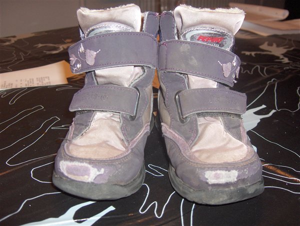 Stella har brugt sine, for mig, skide dyre vinterstøvler til 549,- i 1½ mdr. og der er allerede slidt hul på begge to og de er derfor skide utætte og kolde.