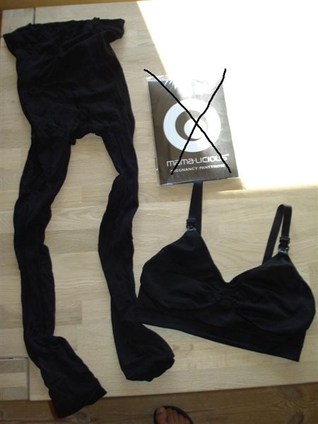 Strømpebukser fra Mama Licious str M/L. går til midt på benene(leggins) + Ammetop fra Bilka uden bøjle. mener det er en M eller L. men meget lille i størrelsen