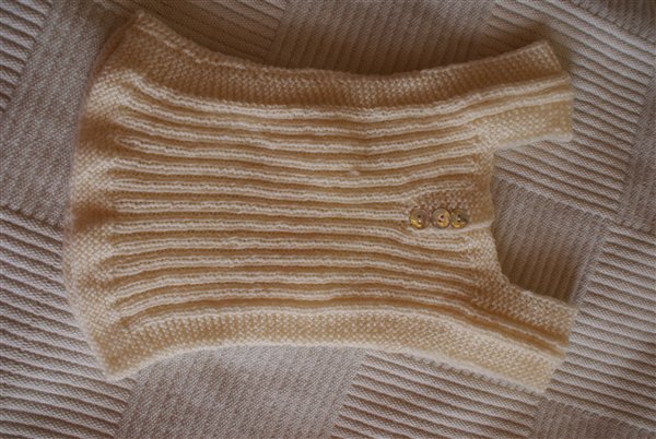 6: Hjemmestrikket vest i råhvid uldgarn ca str 68. 60 kr