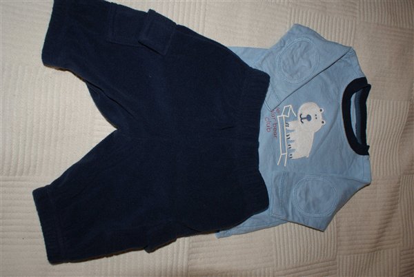 27: Osh Kosh sæt. Bomuldsbluser og fleece bukser str 3 mdr. Sætpris 60 kr