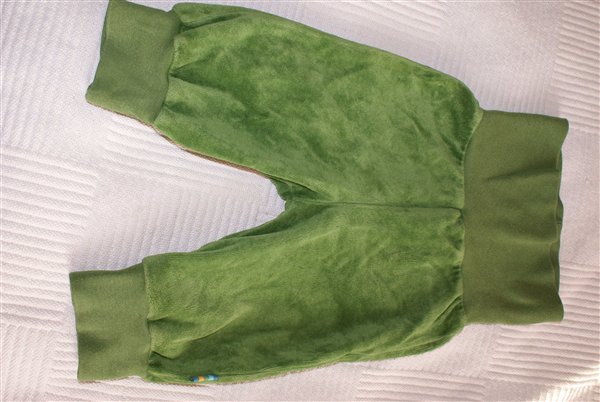 33: Grønne velourbukser i str 62 (mener det er Me Too, men mærket er klippet af). 30 kr