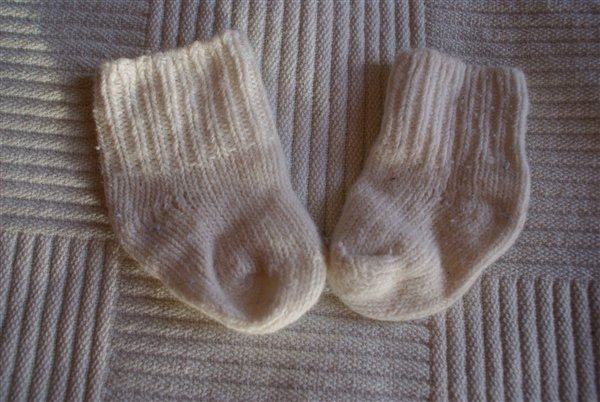 34: Uldstrømper passer til en nyfødt. 20 kr